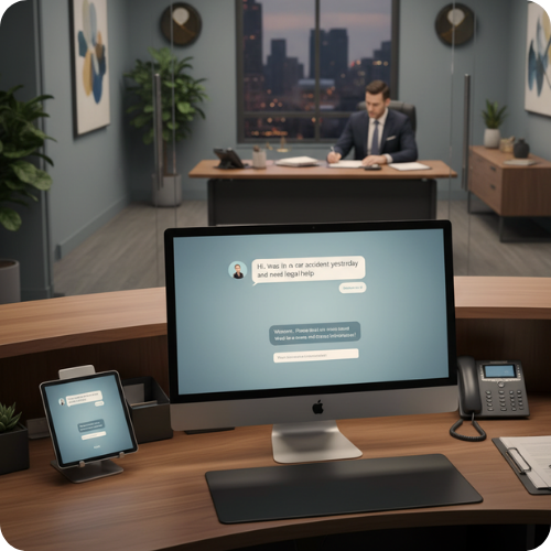 AI intake + follow-up, trained for PI compliance.